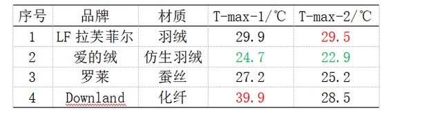 各款不同材质冬被热成像最高温数据统计如上 ▲