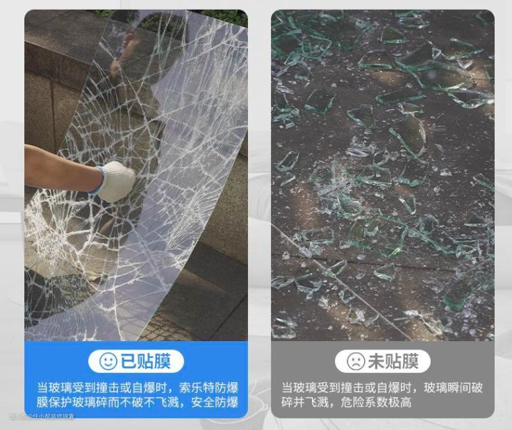 ②如果担心玻璃浴房自爆的问题,可以贴一层钢化玻璃防爆膜,售价在10元/㎡左右,也可以用夹胶钢化玻璃,这样即便是爆裂也不会伤到人。