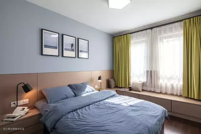 对于飘窗比较大的户型,可以选择这种方式,窗帘装在飘窗中,不占用卧室的面积,因此可以让整个卧室看起来更加宽敞、大气,这样可以让房间整体保持整洁大方的格调。