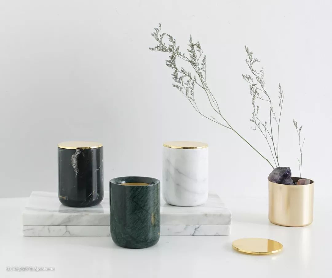 大理石蜡烛杯分为两部分:内杯是不锈钢电镀内胆,外杯是大理石;三个颜色:白色是意大利进口卡拉拉白大理石,绿色是印度进口大花绿大理石,黑色是国产黑白根大理石。