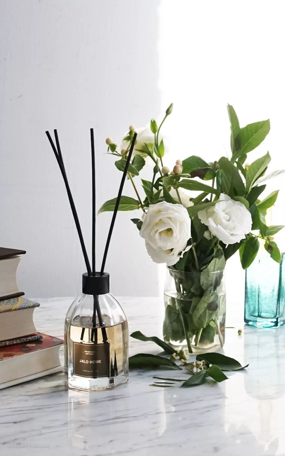 液体香薰需要借助扩香棍挥发。经过长时间的市场反馈,印尼藤条挥发方面比较好,孔小而且多,吸收香薰液体非常快。而且偏直,色泽白,具有极好的装饰性。中国因为气候原因种不出来质量这么好的藤条,所以我们这次也用了印尼藤条,这个应该是目前比较适合做扩香棍的材料。