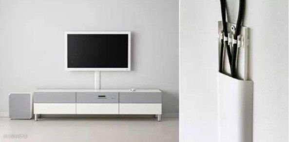 电视附近的电线是比较多的,尤其是壁挂电视,距离电视柜还有一段距离,好几条线歪歪扭扭的垂下去非常不好看,当然预埋线管是最好的解决办法。
