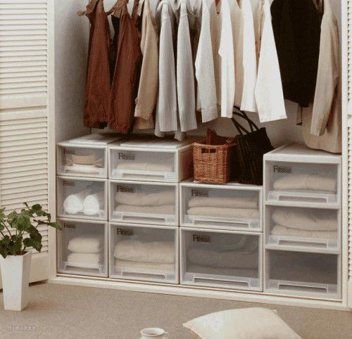 内衣内裤袜子这种小东西要是和外套裤子塞到一起很容易就找不到了,而且容易乱,你也不想一早上起来死活找不到另一只袜子,然后到了公司脱外套的时候掉出来一只吧。这种收纳盒就可以派上用场了,内置分格,格子大小也可选,有翻盖式的,也有抽屉式的,按需选择吧。