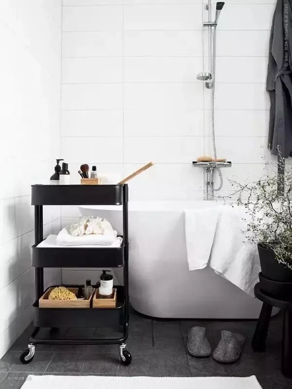 由于小推车本身是金属的,所以即使表面有一层保护漆,还是应该避免长期处于过度潮湿的环境,放置在卫浴区的干区比较合理。