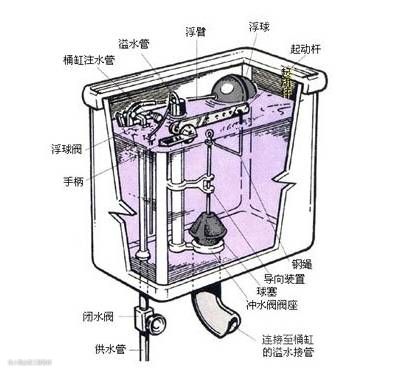 3.设计不当使水箱配件各机构在动作时产生干扰,导致漏水。比如水箱放水时浮球及浮球杆下落后影响翻板正常复位,造成漏水。还有浮球杆过长,浮球过大,造成与水箱壁间摩擦,影响浮球的自由升降,导致密封失效而漏水。