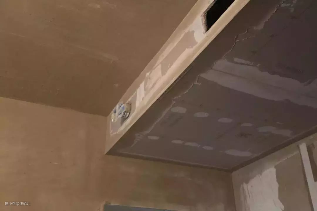 比如说在吊顶石膏板周围追加一层石膏的操作,就是我们通常会见到的防开裂处理。如下图所示: