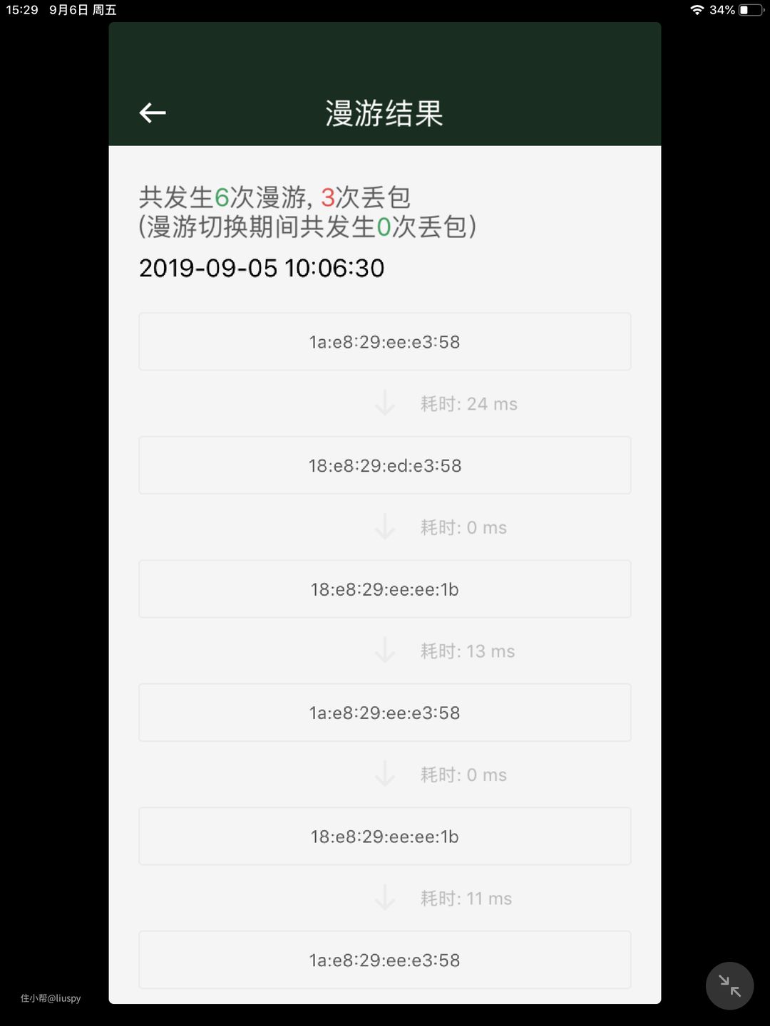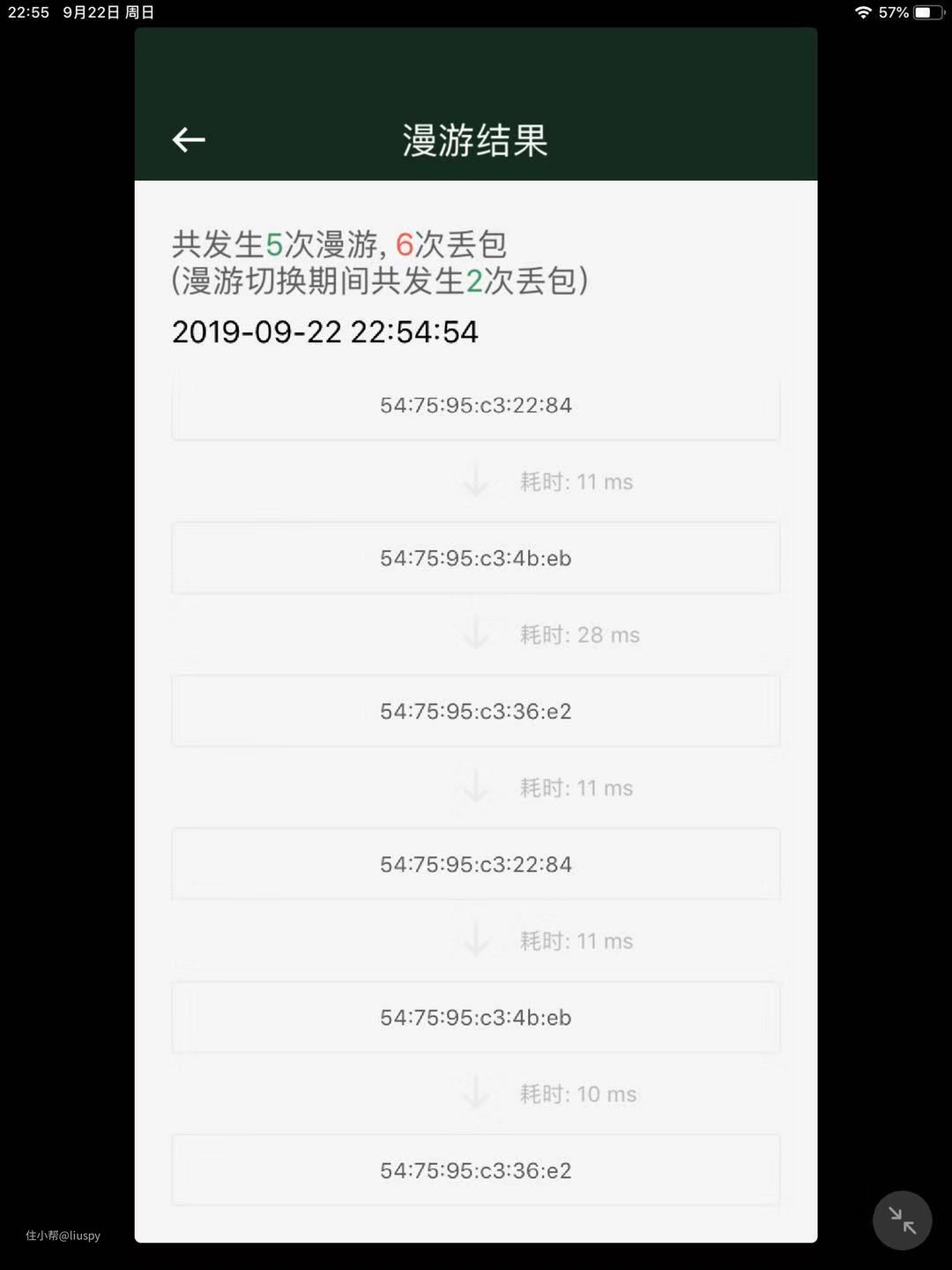 ▼WDR7650支持无缝漫游协议的802.11k/v,可以快速漫游。测试了下ipad的漫游效果。出现丢包情况较多,但漫游速度给力表现不错!