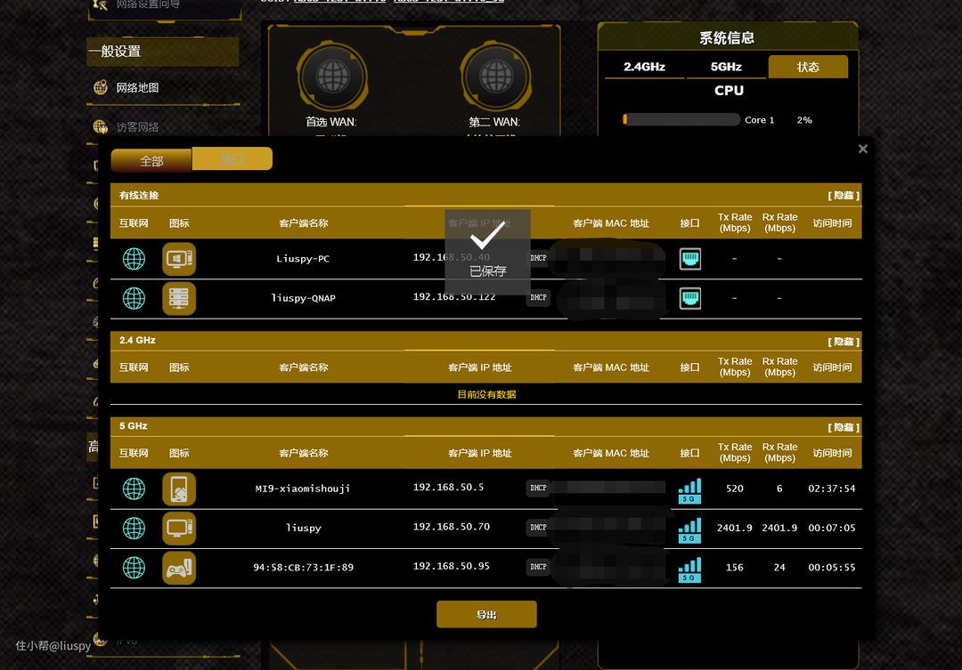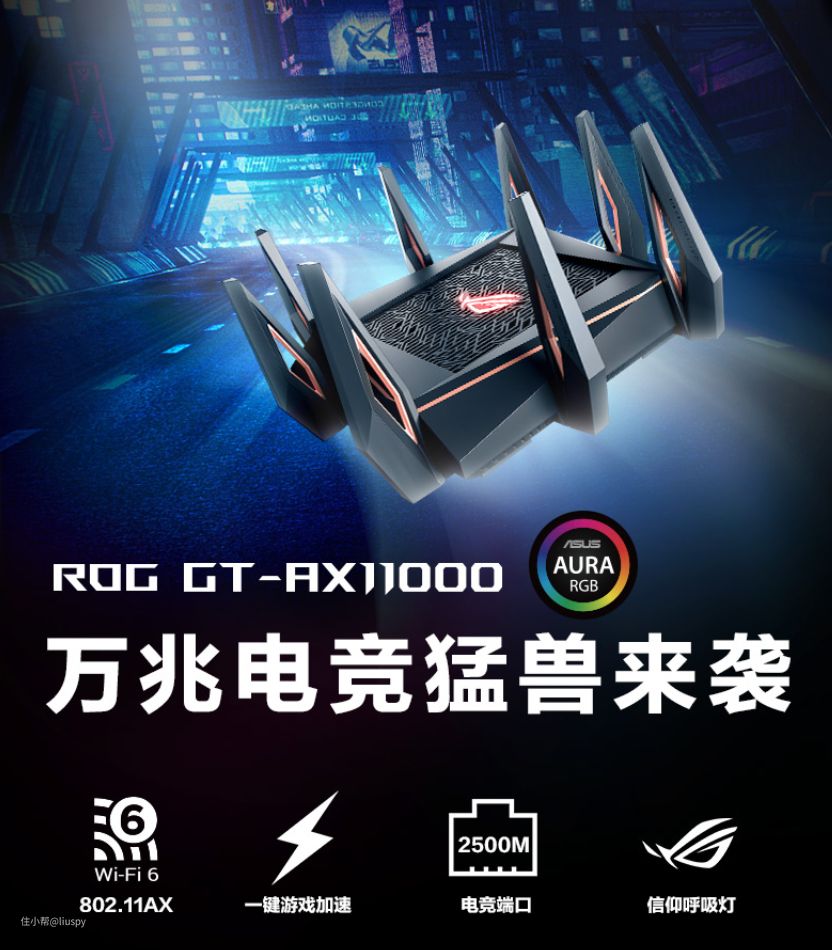 退而求其次的华硕(ASUS)ROG GT-AX11000,也可以考虑,不过其网口只有2.5G,倒是也可以跑满2*2MU-MIMO的2.4G速度。