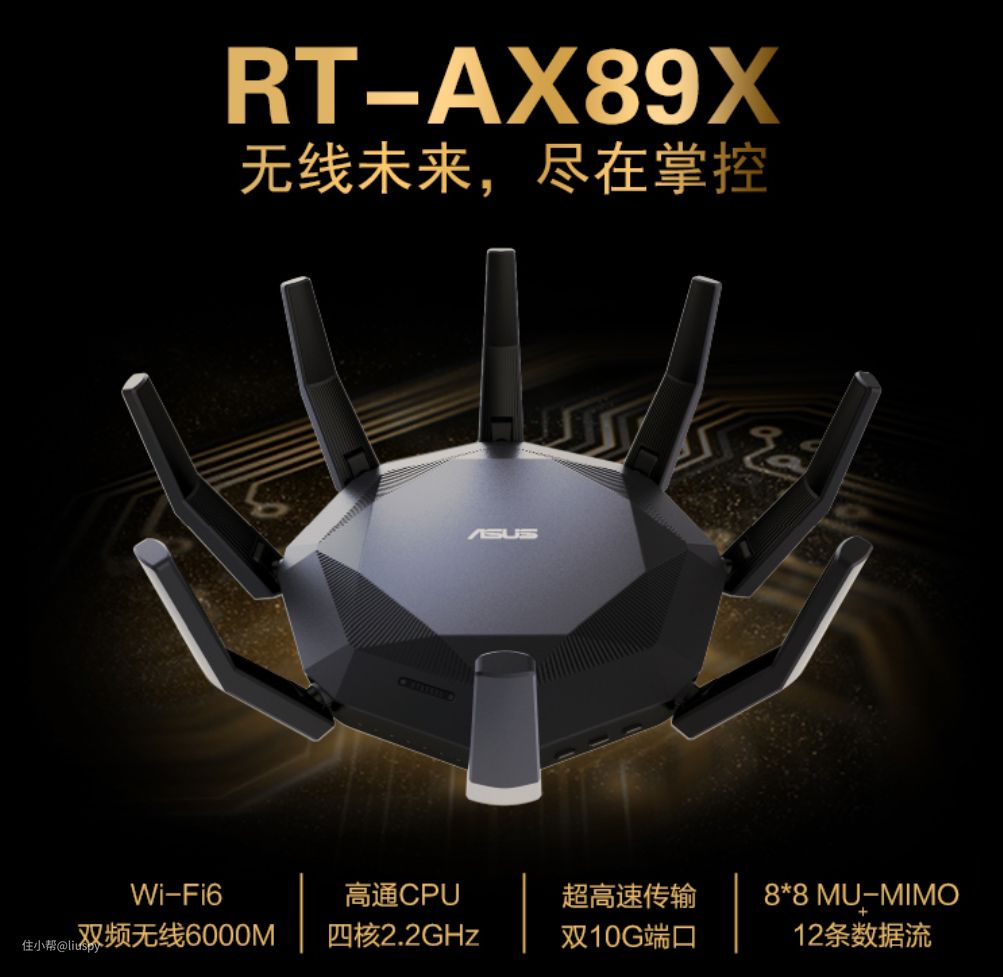 ▼华硕(ASUS)RT-AX89X这是楼主唯一推荐购买的wifi6产品,因为其搭载了万兆接口,配合万兆网络+NAS+m2的ssd,速度爽歪歪!楼主倒是真想入一个试试,因为万兆网络(万兆NAS+万兆交换机)楼主已经搭建起来了,有没有支持一个的,哈哈。