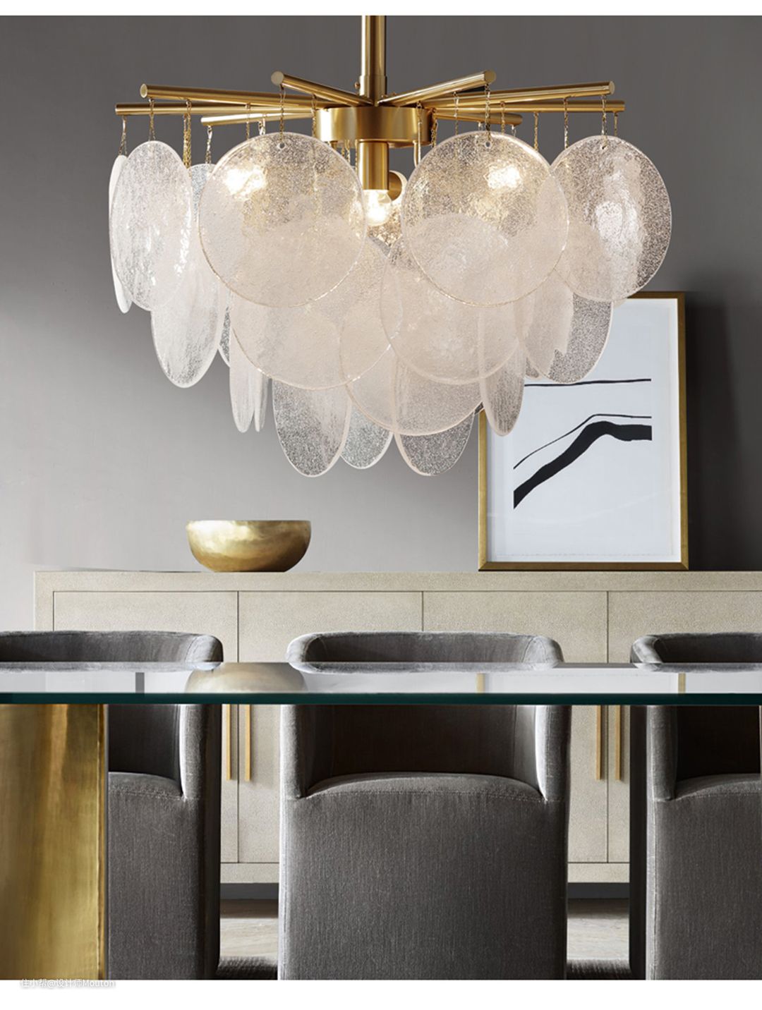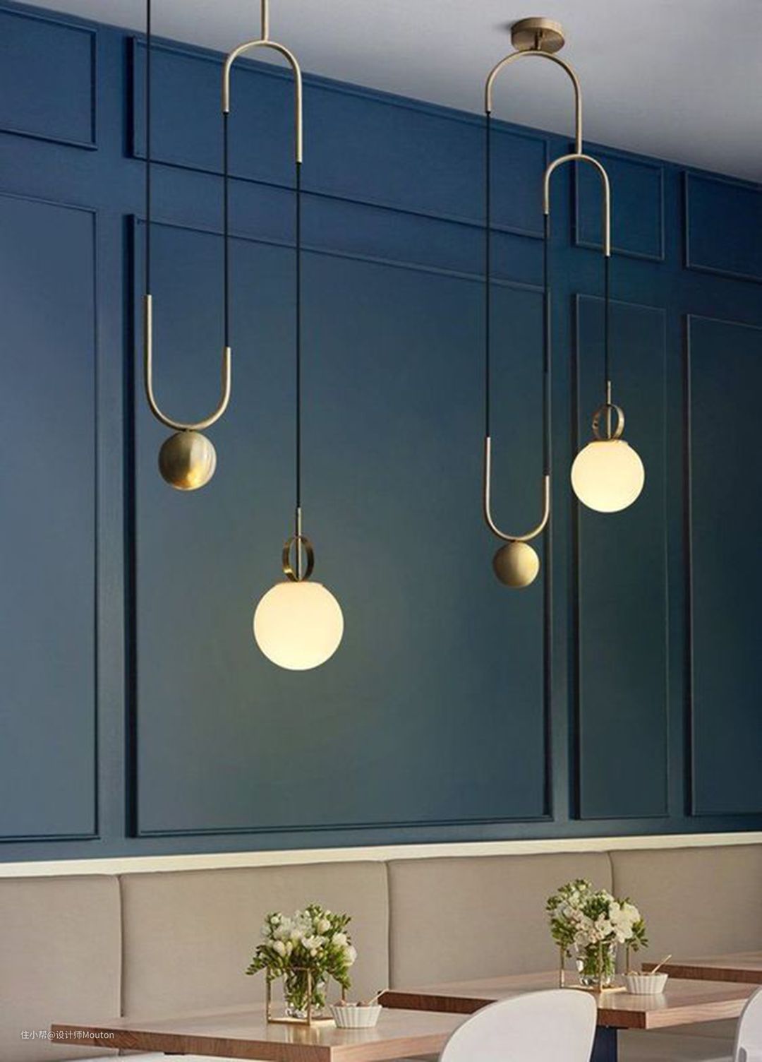 层高2.3米以上,可考虑吊灯;2.3米以下层高过矮,建议吸顶灯或者无主灯设计;