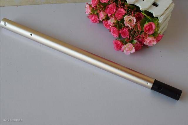 金色的这一条则是衔接伸缩杆,它主要用于拖地时加长高度,而擦窗户时由于需同时按住拖把柄和控制伸缩杆,则不需要连接这条衔接伸缩杆,中间黑色部份有一个连接按钮。