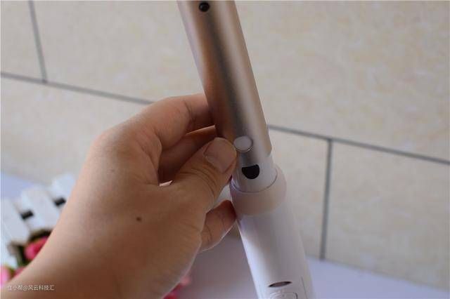控制伸缩杆和上部和拖把柄遥相呼应,都是同色设计,电源开关位于黑白之间,只需轻轻一推,就会开启电源,金属部分则起连接作用。