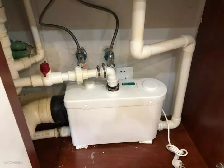 排水管如果走顶,就需要用污水提升泵,先把粪便打碎,把它吸到天花板上,通过天花板上的管道排到主排水管里。