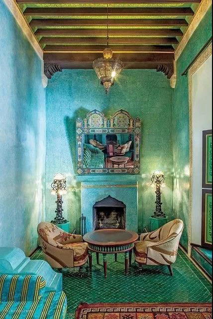 摩洛哥色彩有着它独有的“强迫症”,在传统的摩洛哥风格中很少看到白墙,整个空间对色彩的运用都要达到一丝不苟,好像没有色彩就活不下去了。