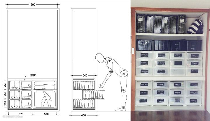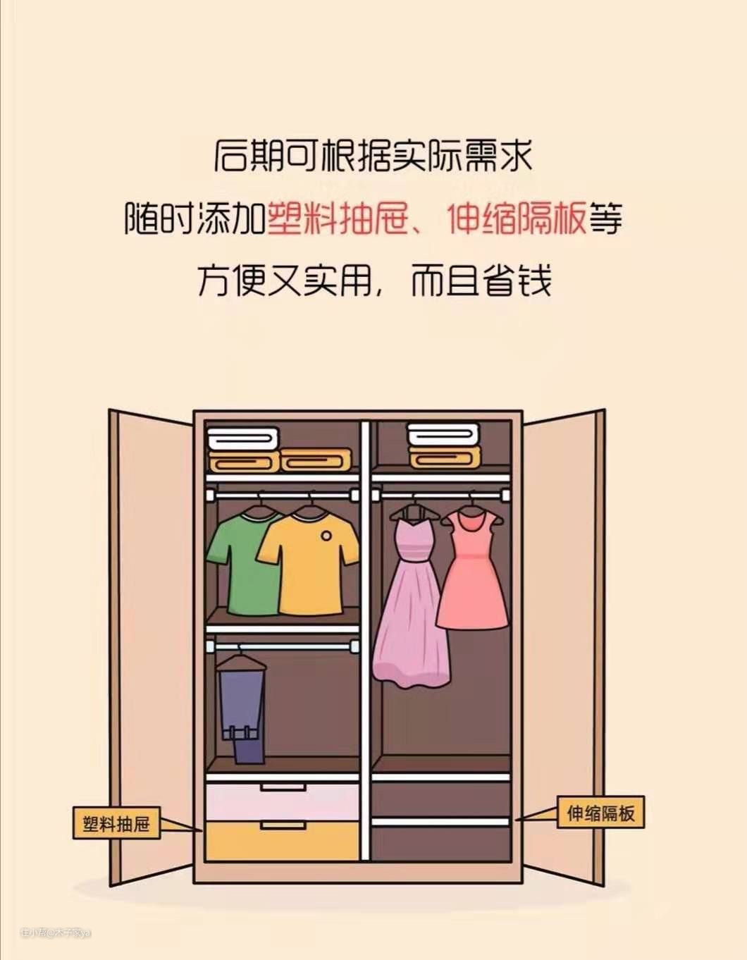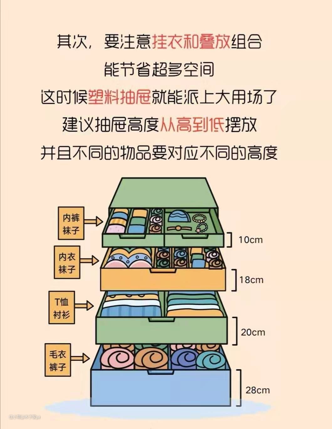 后期可以根据实际需求,随时添加塑料抽屉或隔板,非常方便省钱,关键很实用。像上图塑料抽屉,分类整理放衣物非常整齐,而且随时可以根据衣物情况来调整。