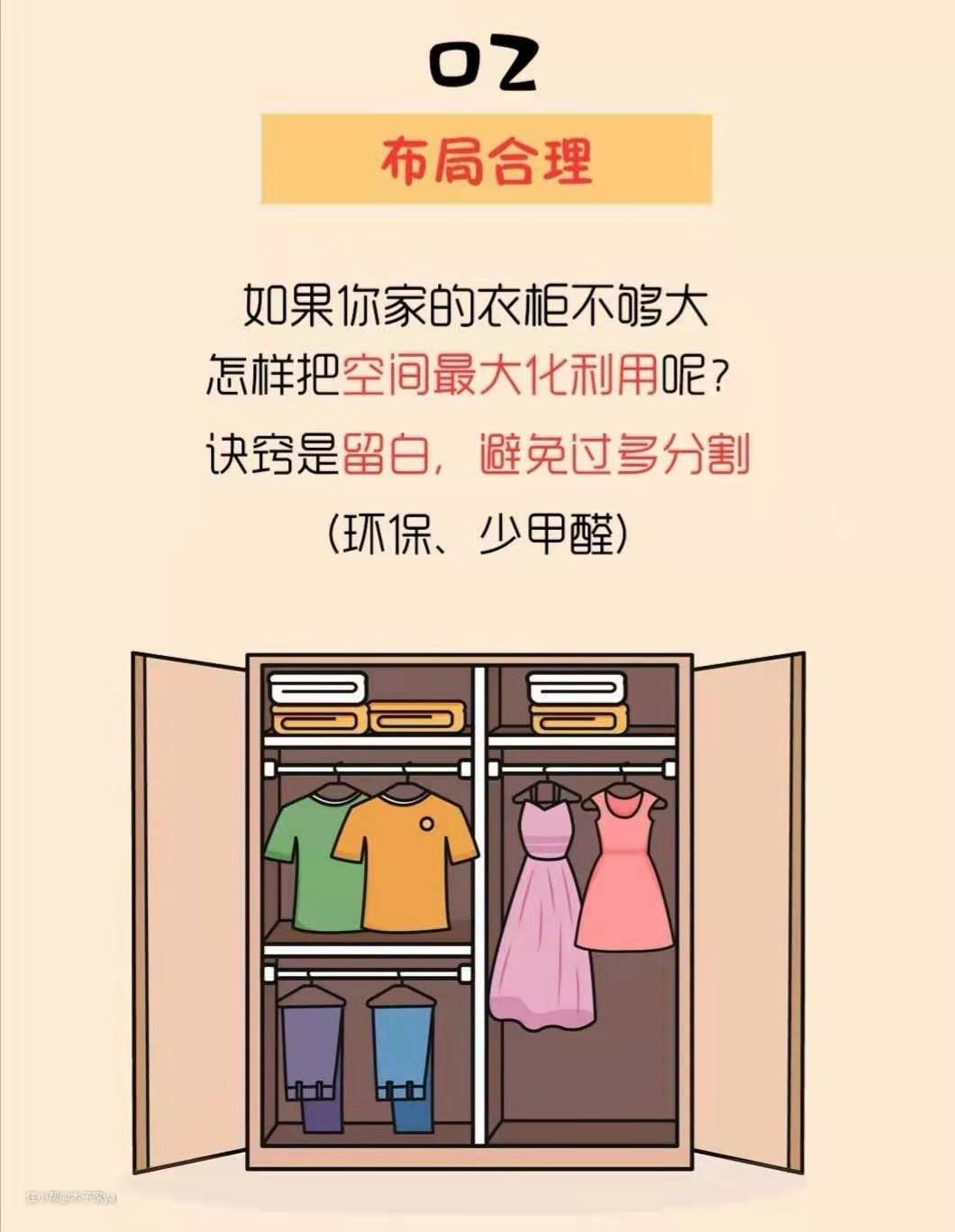诀窍:留白,避免过多分割,使得衣柜有局限,后期没法根据实际衣物情况来调整。