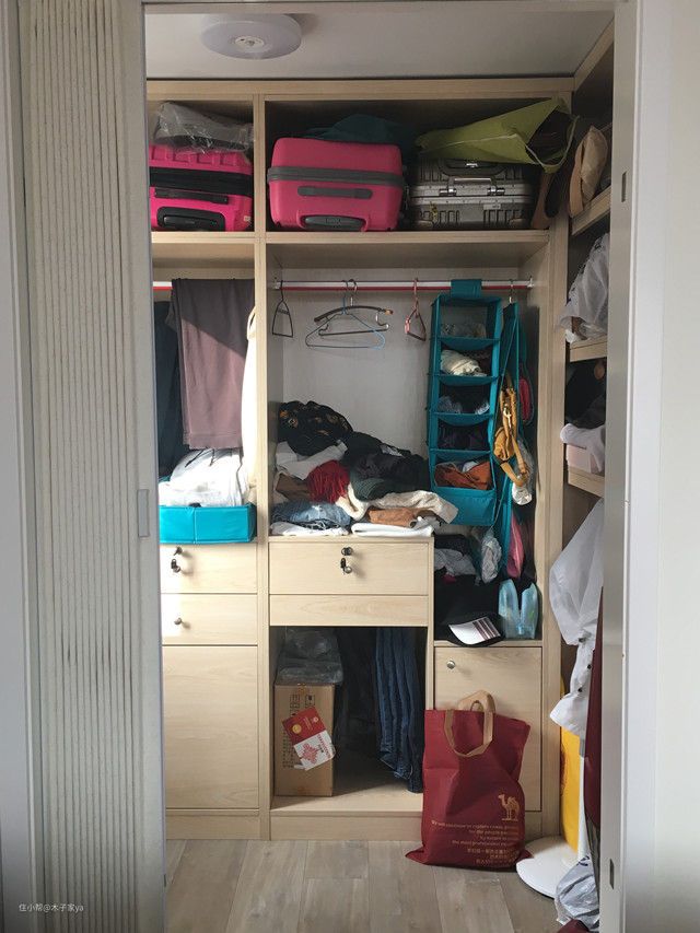 2、衣柜总是一团乱,不够整洁,如果布局不好,即使给你一个超大衣帽间照样乱糟糟。