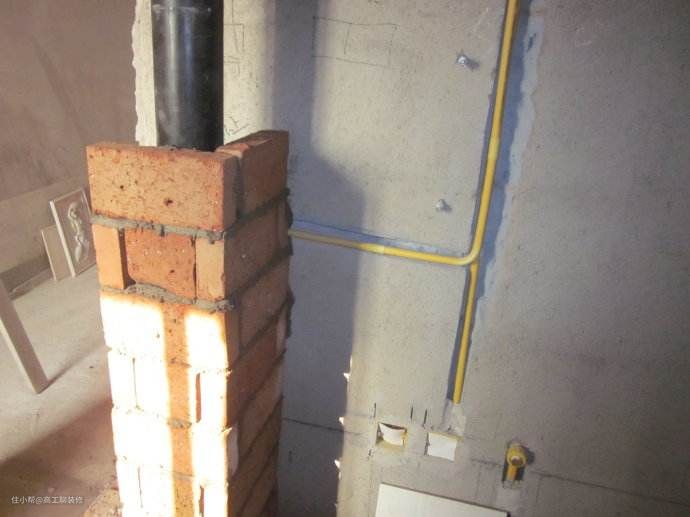 用砖头和灰浆、水泥灰浆、钢丝网搭起柱子,最后粘贴瓷砖。这是目前最常见的做法,优点是不易变形,隔音效果好,缺点只有一个,占地面积大。