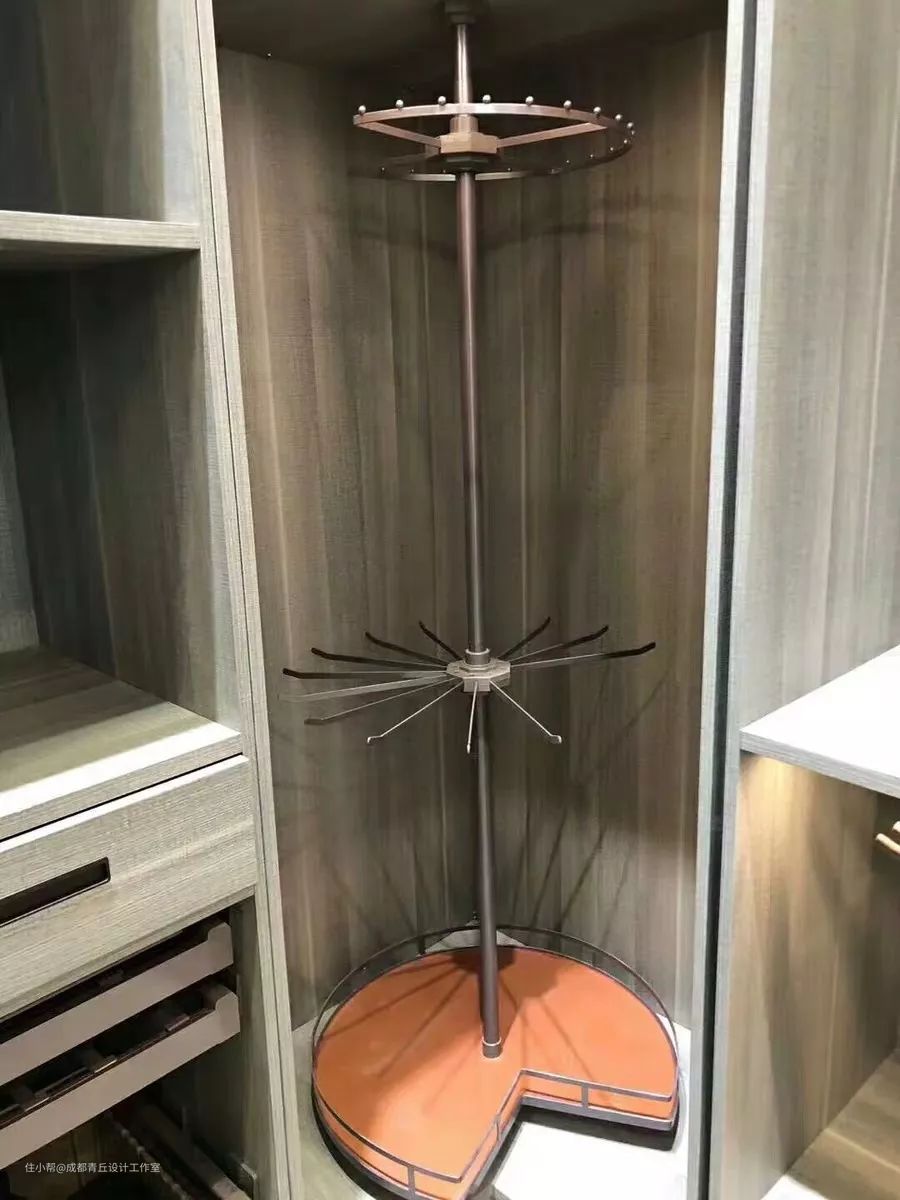 ⑤90度拐角位置,可用360度可旋转衣架+隔板收纳架,空间更大化利用;