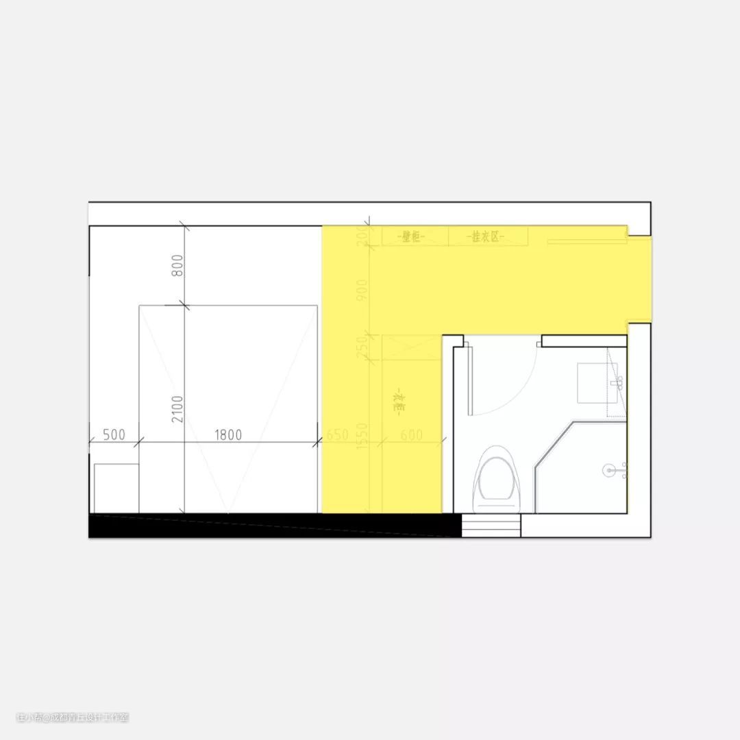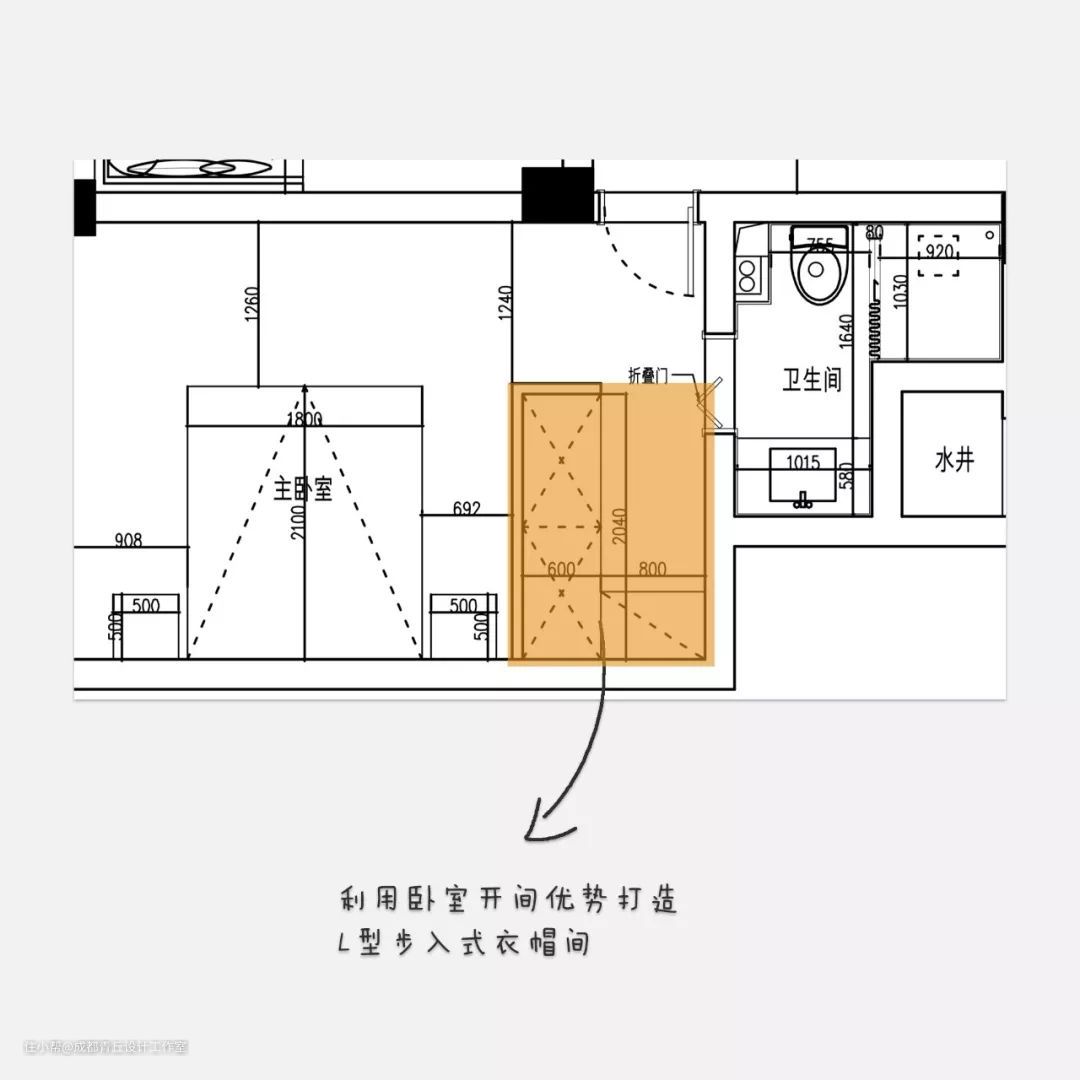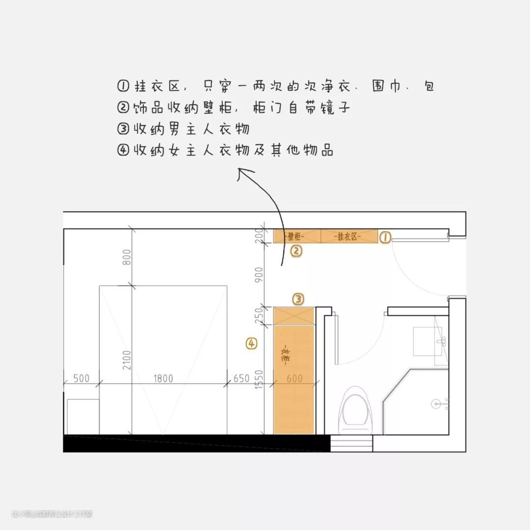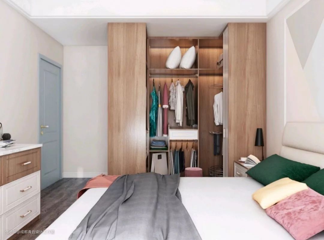 1、利用卧室进深 / 开间优势,用柜子隔出一个衣帽间