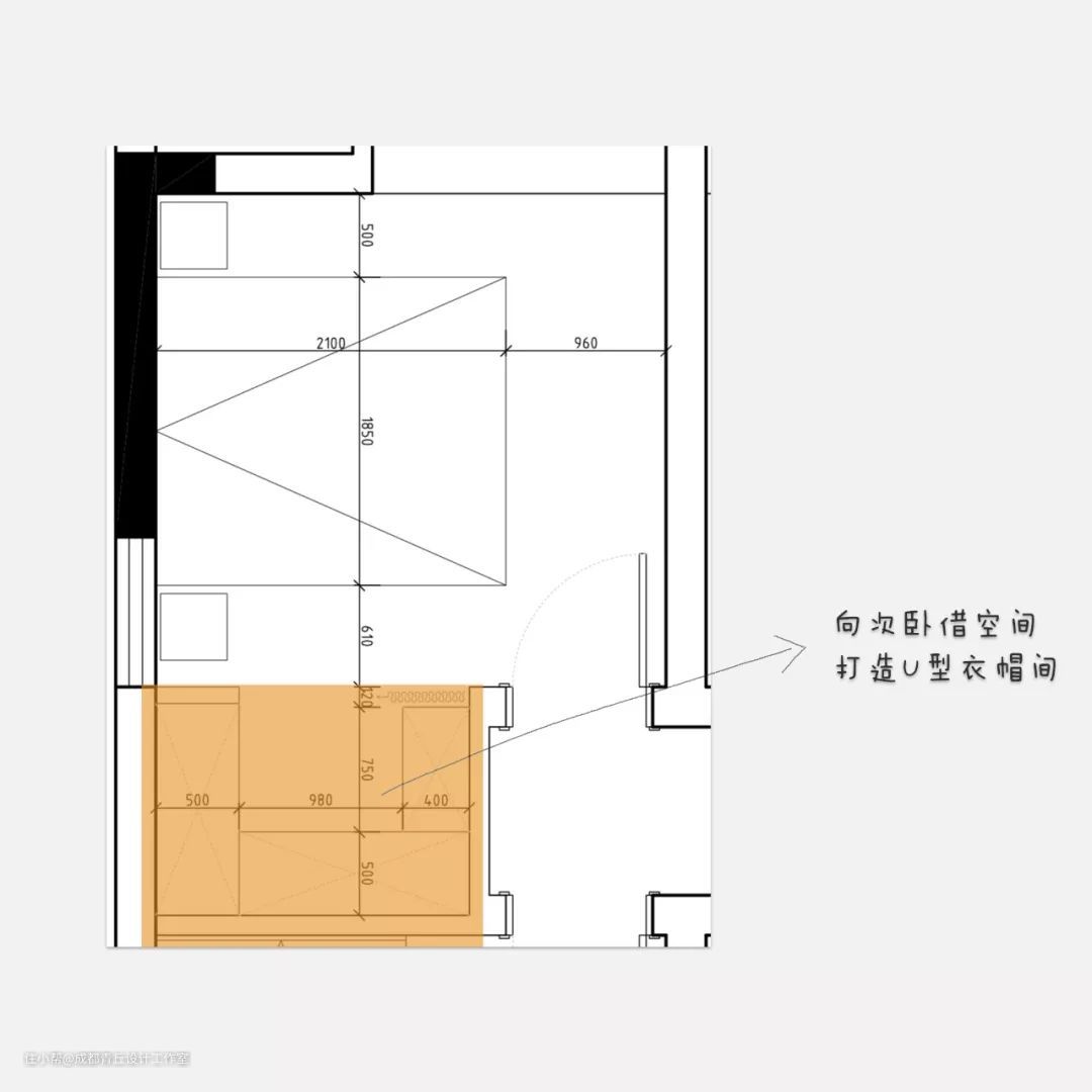 怎么借空间?需符合两个条件:①墙一定是非承重墙&②不影响隔壁房间正常功能布局和使用▼