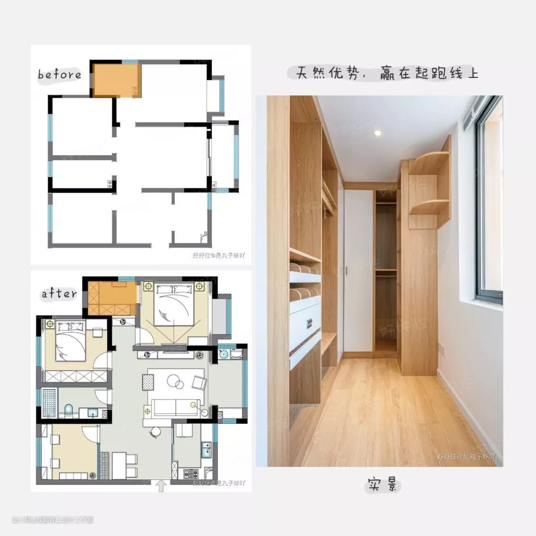 在此郑重呼吁大家,如果早就有做衣帽间的想法,看房买房的时候一定要仔细斟酌,钱多买面积大的,钱少挑户型好改的。