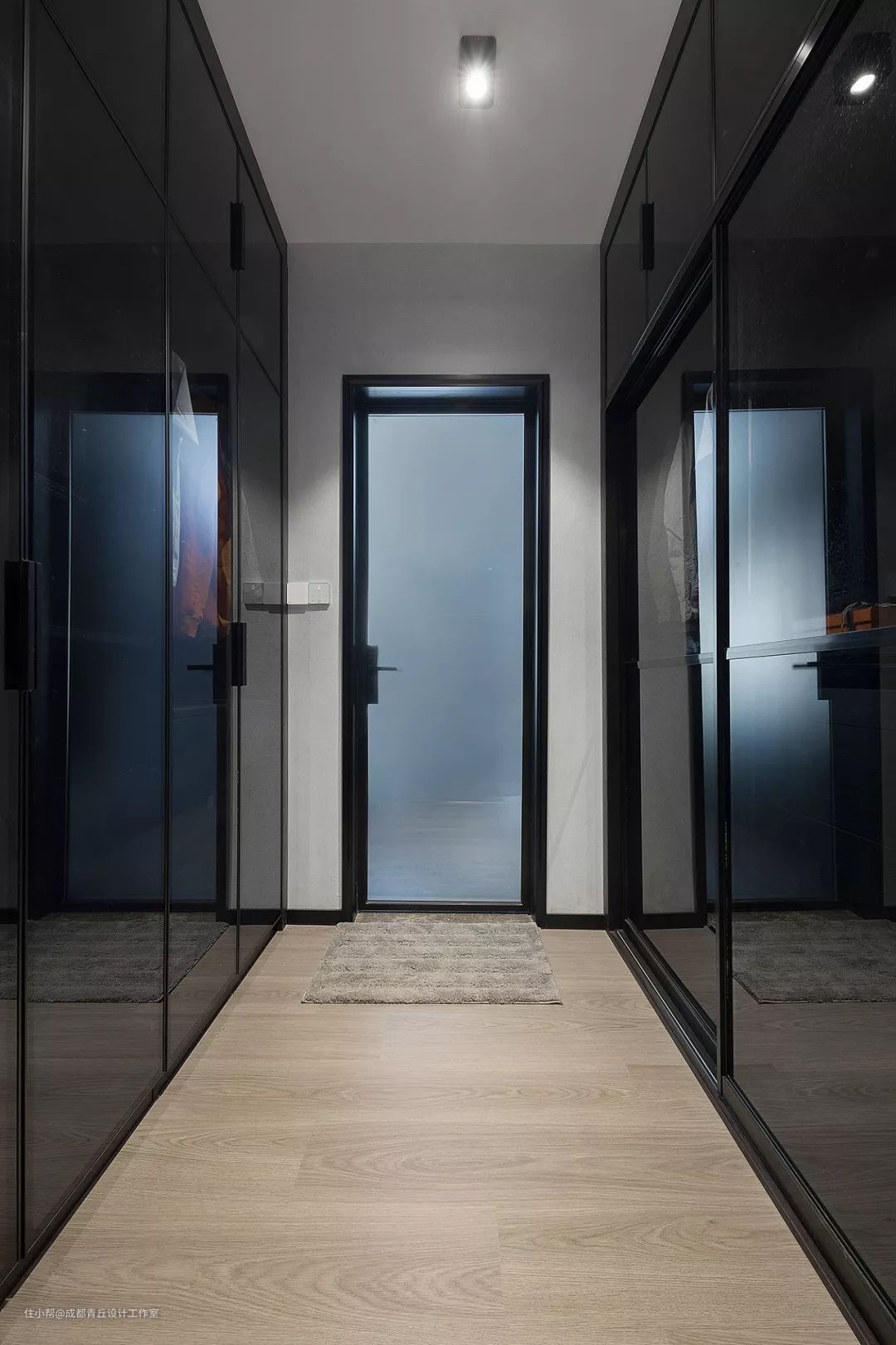 5、双直排衣柜打造步入式衣帽间,一石二鸟,解决卫生间正对门的问题