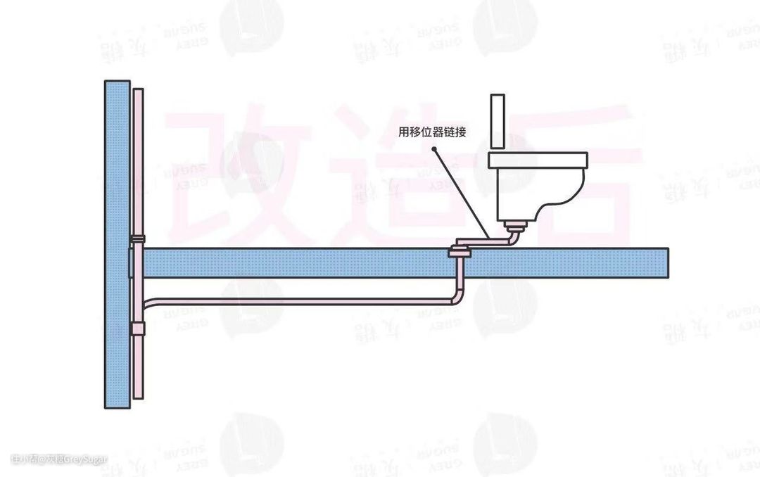 一般不会有人同意你在他家楼顶动工,所以其实大多数人会使用移位器。用移位器将下水管口与新的马桶排污口连接。