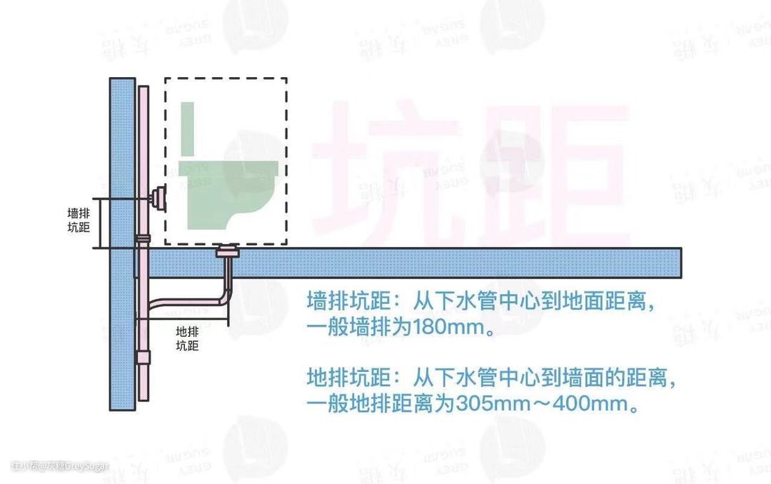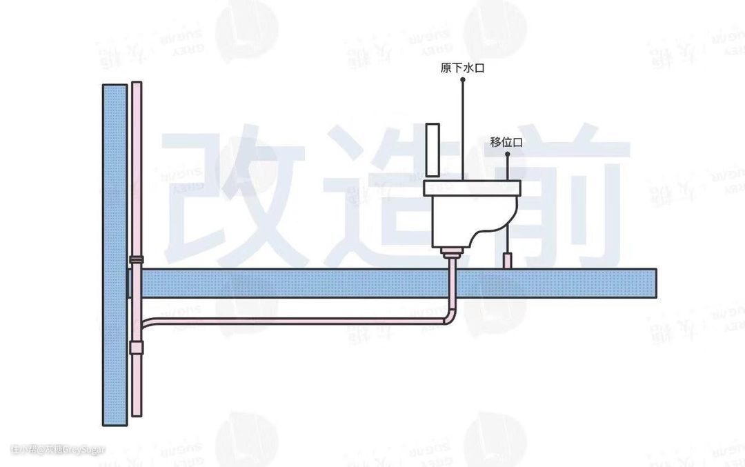只是确认这种排水方式后,就要注意选择“墙排水”的马桶了。而且尽量保证马桶移动后的位置在立管相邻墙面,如果在对角线方向,水管铺设会更麻烦。