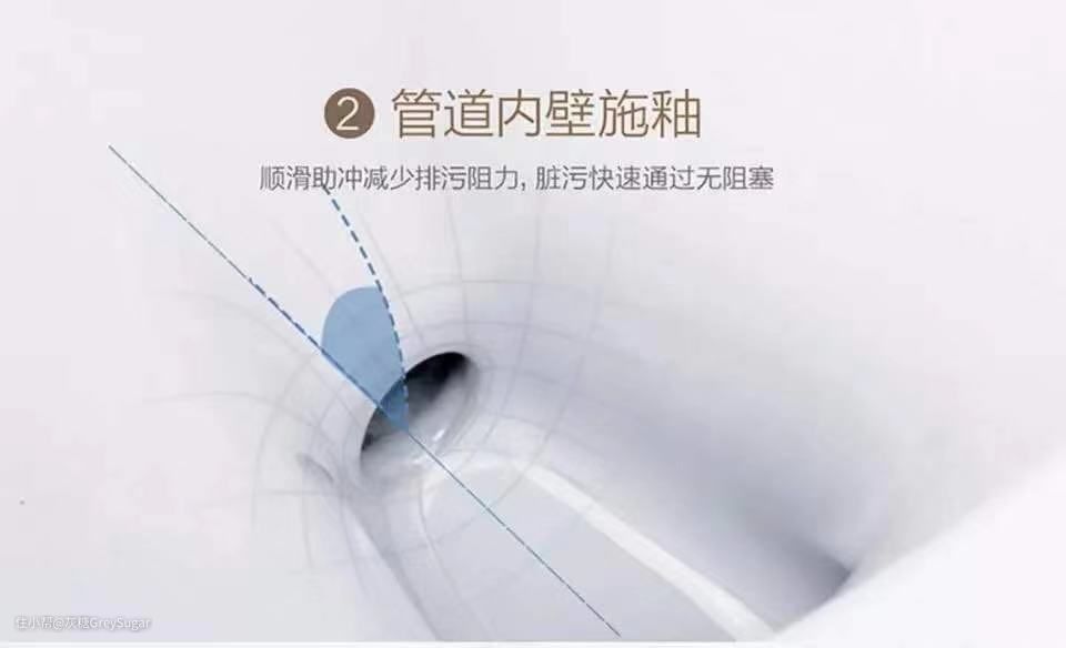 釉面不仅要看马桶外侧,马桶内壁和污口处的施釉更加重要。内壁和污口处的釉面好坏直接决定马桶内壁是否挂污,清洁难易程度怎么样。所以好的马桶应该是做到双面施釉的,而不是只在马桶外壁下功夫。