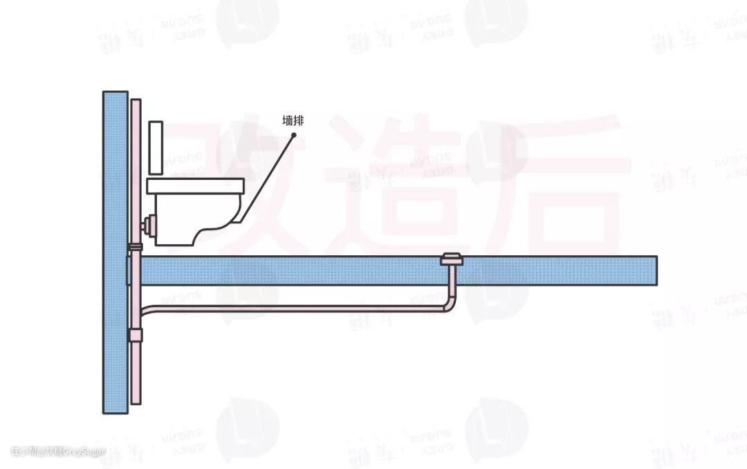 只是确认这种排水方式后,就要注意选择“墙排水”的马桶了。而且尽量保证马桶移动后的位置在立管相邻墙面,如果在对角线方向,水管铺设会更麻烦。