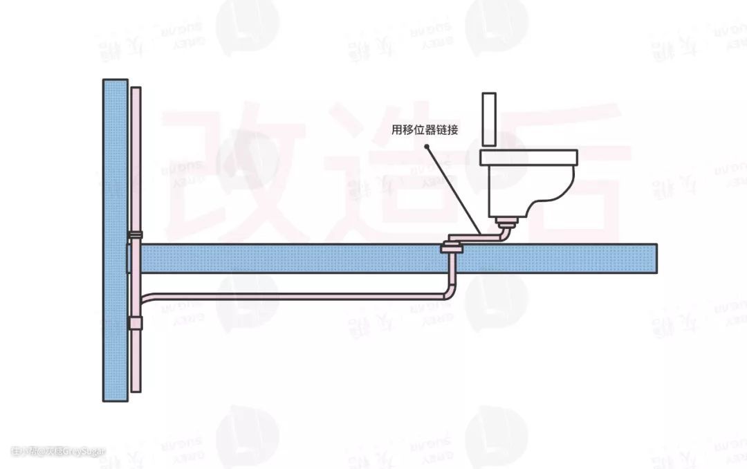 一般不会有人同意你在他家楼顶动工,所以其实大多数人会使用移位器。用移位器将下水管口与新的马桶排污口连接。