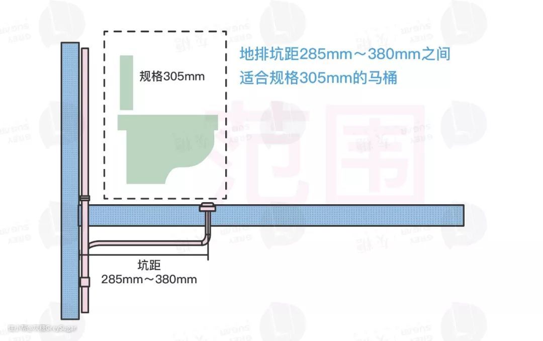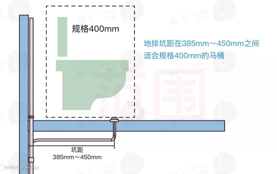 其实,大部分家里都是使用地排式马桶。常见标准坑距为305mm和400mm。如果你家马桶坑距在285mm-380mm之间,可以考虑选择300mm坑距的马桶,坑距在385mm-450mm的,可以考虑400mm坑距的马桶。当然,这些只是一个参考,具体还是依据马桶品牌所有的坑距进行合理选择。