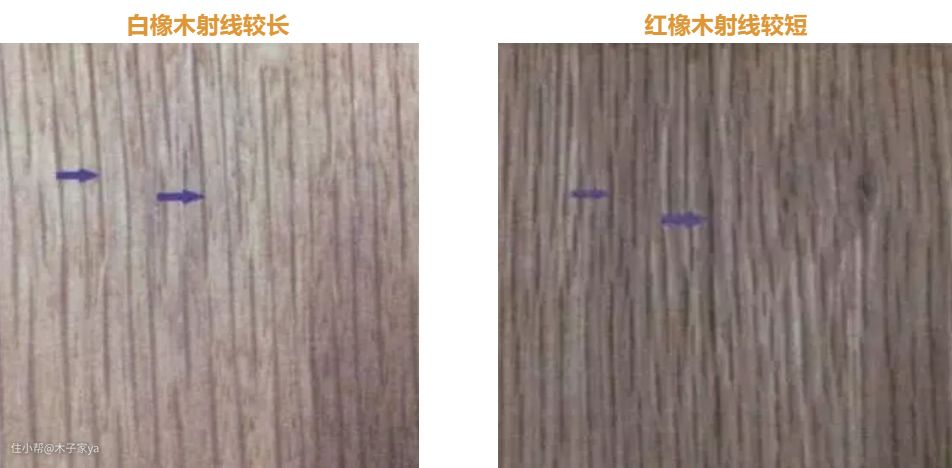 质感上:红橡木对比白橡木木射线较短,显得更粗狂,有一种质朴风。