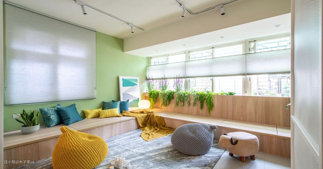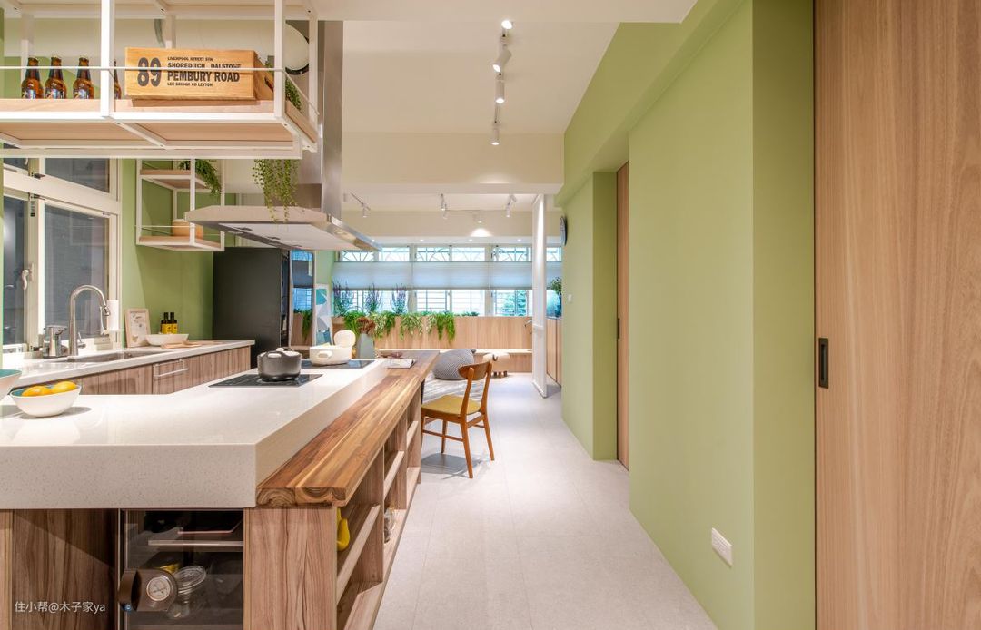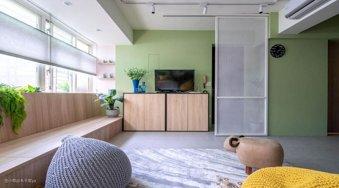 这是一个二楼的旧房子,拥有20多年楼龄,改造前光线昏暗,隔间多。台湾设计师通过巧手改造,使得老屋各个空间更加开放,并且在卧室玩起门中门的躲猫猫概念,让小朋友可以快乐在屋内从头玩到尾。整个案例在色彩上,绿意满满,任阳光自由穿透,并且拥有超强收纳,让全家人连假日都不想出门,只想待在家玩。