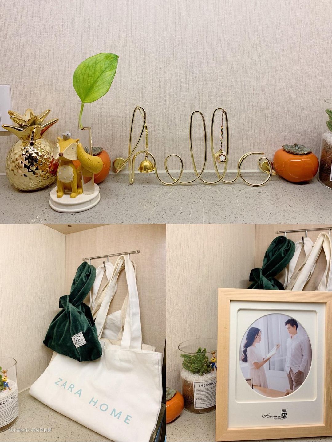 玄关上我摆了一些趣味性的小摆件,首先映入眼帘的就是我和家属的生活照。进门就有归属感,小狐狸试管花瓶像一个小卫士,超喜欢~金菠萝储钱罐是搬家的时候为了聚财买的,两个柿子是物业送的,盖子打开也是储蓄罐的功能