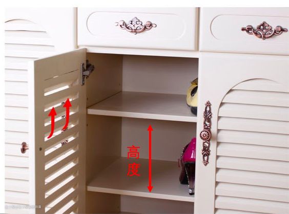 在定制鞋柜的时候,可“打排孔”,即在侧板上每隔32mm一个孔,这样所有的层板高度都可以随意调整了。