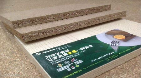 同样是刨花板,山东烟台万华集团的产品。但它的原材料不是木头,而是秸秆和MDI胶。MDI胶即使高温也不产生游离甲醛,检测仪测禾香板甲醛释放量显示0.01(<0.01以仪器的精度测不出来),几乎为0,因此可以说是“0甲醛释放量”。