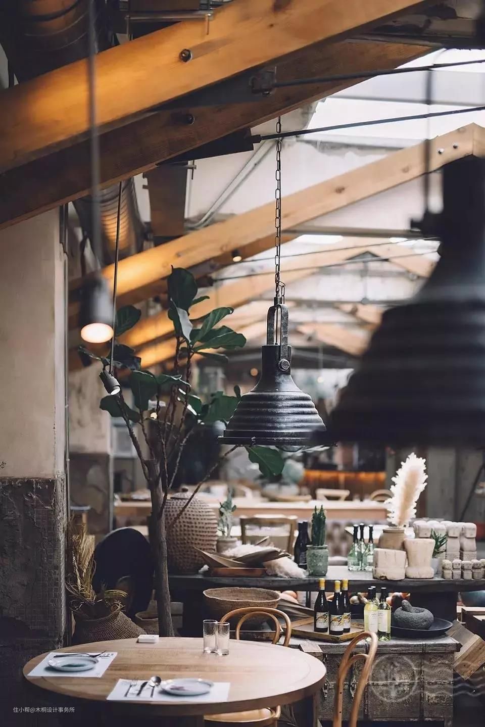 暴露管线、横梁、空调设备的顶部,是打造工业复古风格的标配,这些纵横交错的线条大多粗犷不羁,形式灵动自由,赋予了空间独特的气质和灵魂。