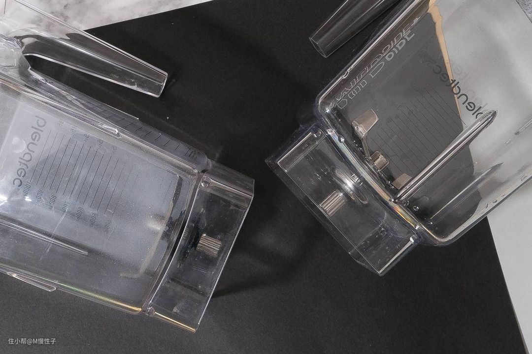 ▼再看下外观部分,老机器使用长了还是会有些痕迹的,和新的对比,新的真透明呢。老的是四方杯,新的是标准五方杯,容量更大。