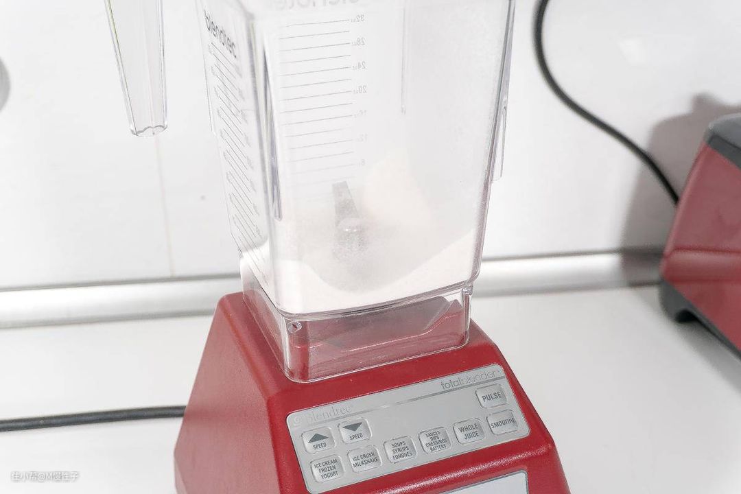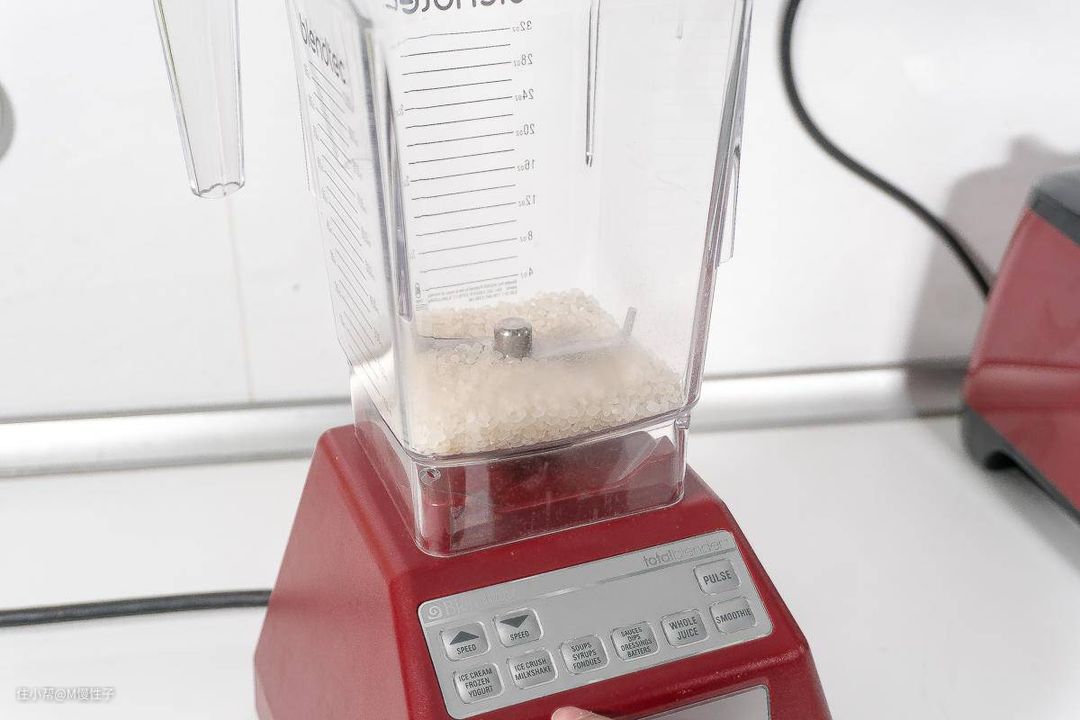 ▼一用五年过去了,来看看动力如何吧,打个坚硬的米粉试试,blendtec的机器不分干杯、湿杯,一个杯子全部搞定。