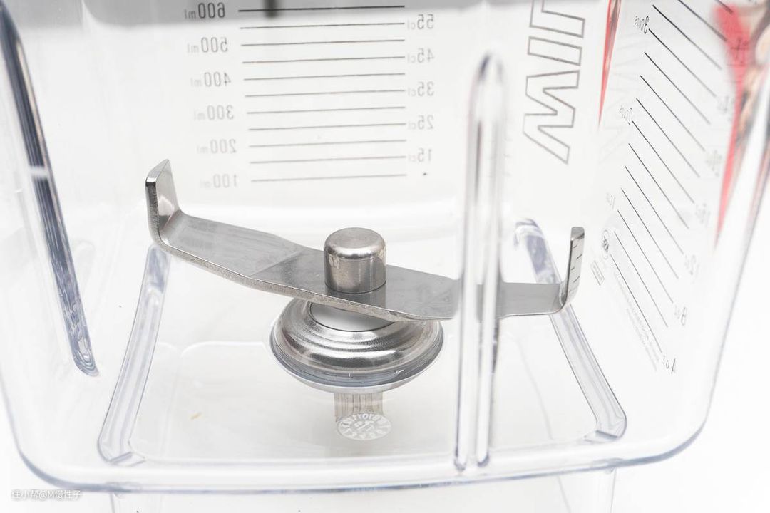 ▼刀片的部分,如下图,blendtec使用的是没有刀锋的2片钝刀。钝刀是使用大扭力撞碎食材,对电机扭力以及程序设计要求高,好处是使用效果一直能保持初始的状态,这也是为什么这么多商用用户选择blendtec的原因。以及我之前的测试,5年多使用效果仍然很好。