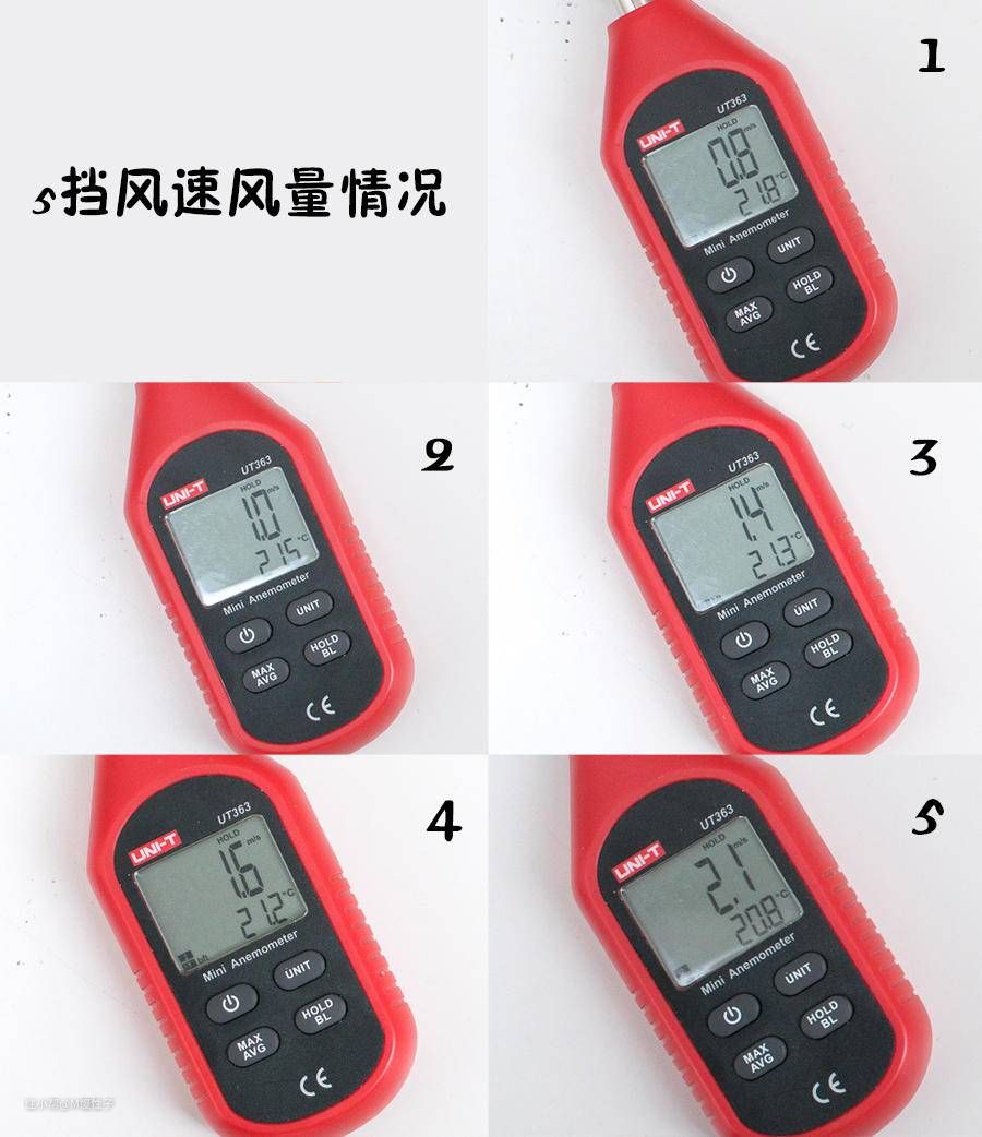 ▼当然对于风量还是要实际感觉更直观,我自己体会风量明显提高是从2挡开始,噪音则在三挡开始有所提高。以下是各档风力的动态展示。一档基本是微风的感觉。