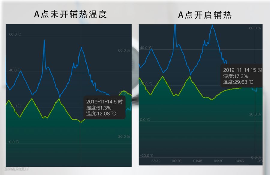 ▼从数据实测看,还是选用带电辅热的米家A1更好一些。