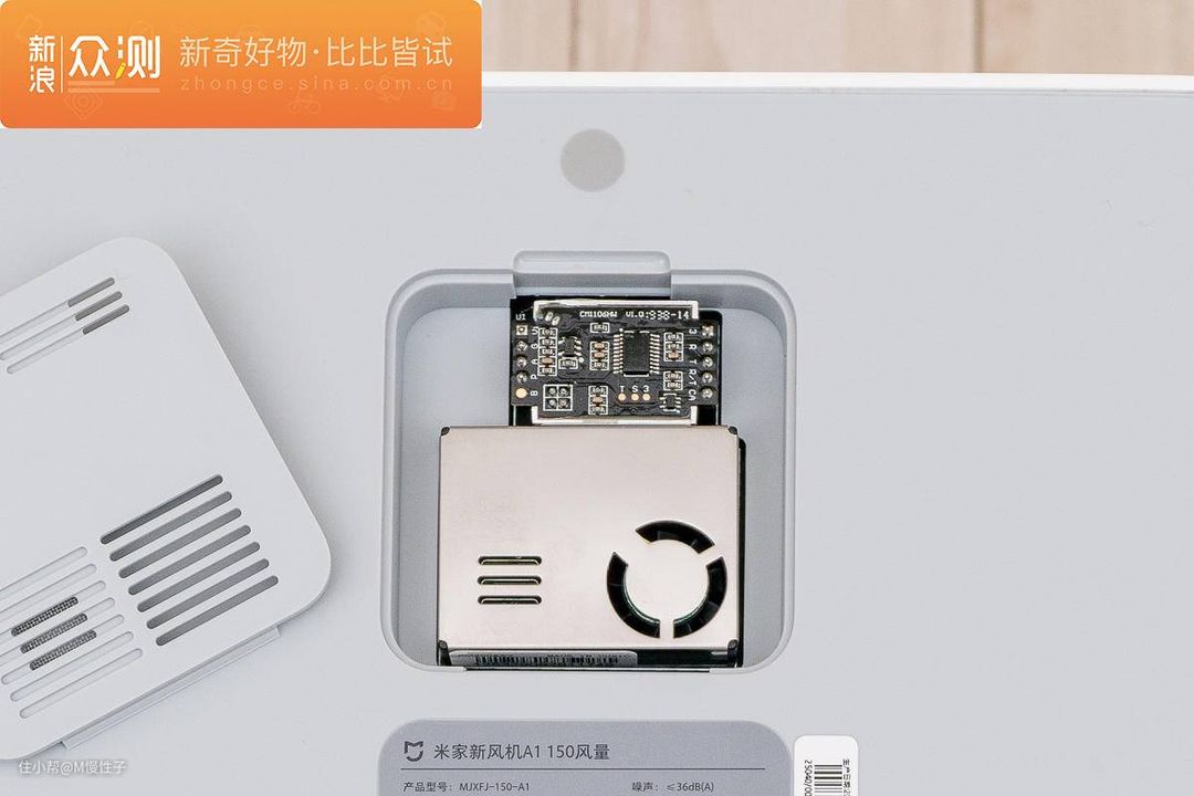 ▼放大看,拆开后可以看到激光pm2.5检测模块以及二氧化碳检测模块,我自己有买过类似模块的空气检测仪,仅两个模块就要600元的价格,米家的新风机都配有这两个模块,还是很厚道的。