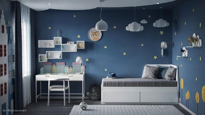 粉色系+白色,唯美浪漫,适合小女孩。蓝色系+白色,清新脱俗,适合男孩子。当然也可以选用其他清新活泼的颜色,好看的颜色搭配更有利于培养孩子的审美。