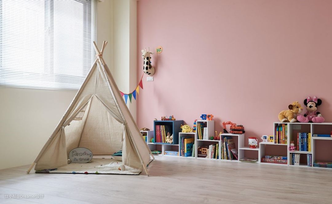 儿童房的娱乐区,其实就是孩子玩耍的地方。一个儿童帐篷游戏屋+一张地毯+各种各样的玩具,就可以成为孩子玩耍的游乐园了。