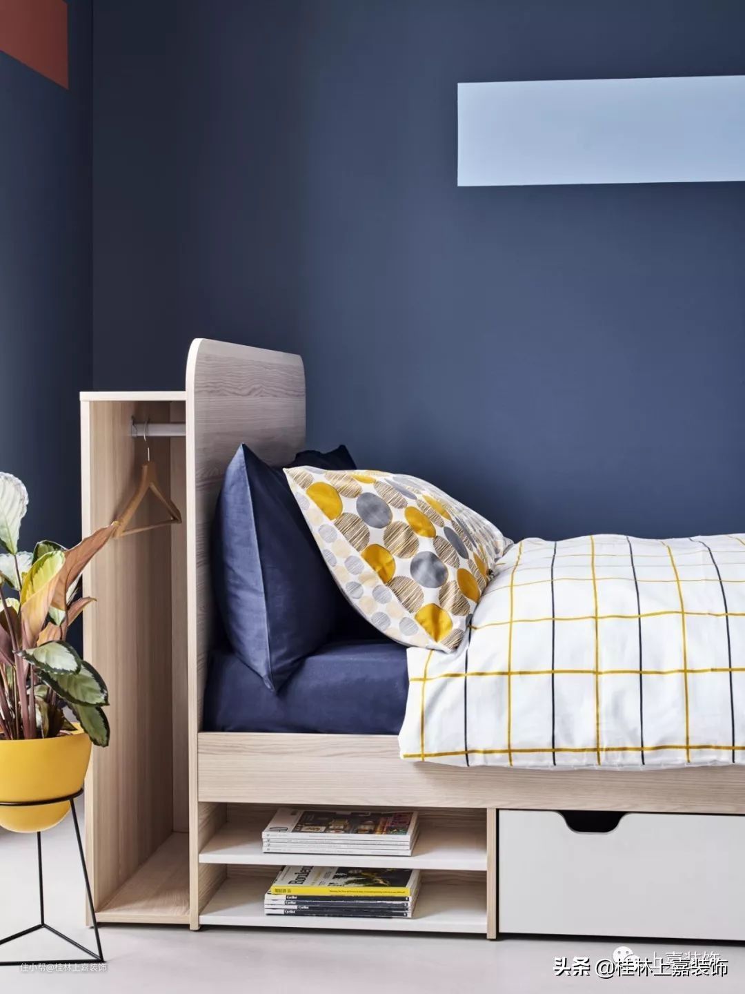 为什么还只有床头板储物柜,而同时又有墙架可以匹配呢?这通常是一个被忽视的储藏机会,因此,在小卧室中,请确保将其最大利用。