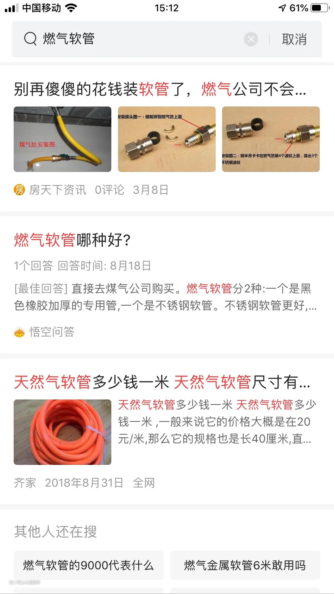 另外对于燃气软管了解还不够透彻的朋友,您可以直接用今日头条app上方的搜索框输入燃气软管,就可以看到更多丰富的相关资料,还有头条上燃气专家对它的介绍。头条搜索内容全面丰富,你以后遇到疑问不妨可以用头条搜索试试。