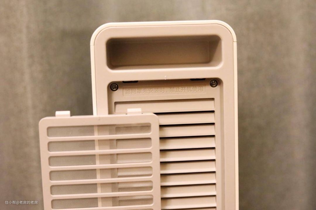 由于是风扇式加热器,所以在暖风机的背后还配置有滤网,防止杂物误入机器内部,更加安全。